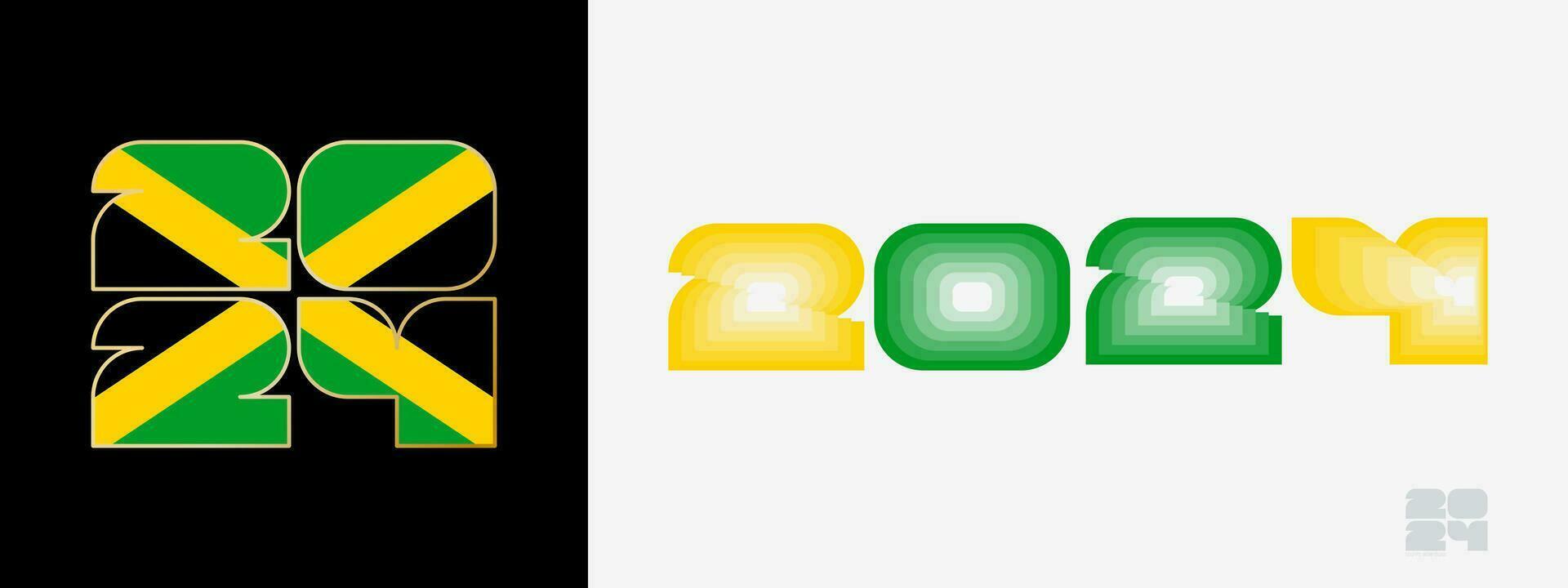 Source : www.shutterstock.comYear 2024 with flag of Jamaica and in color palate of Jamaica flag